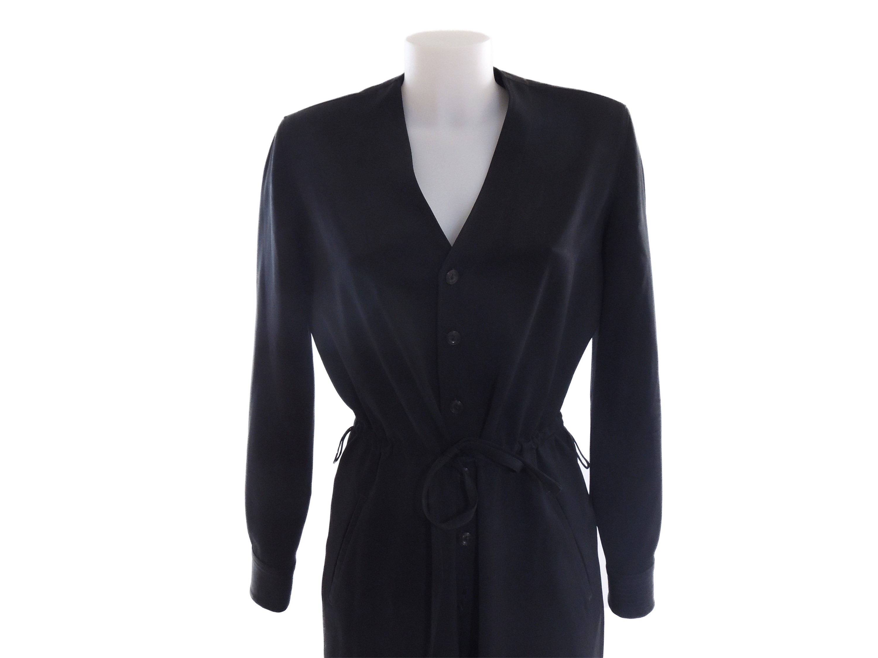 Anni Novanta in lana nera scollo a V abbottonatura centrale e coulisse sulla vita, ampio pantalone, lievi difetti