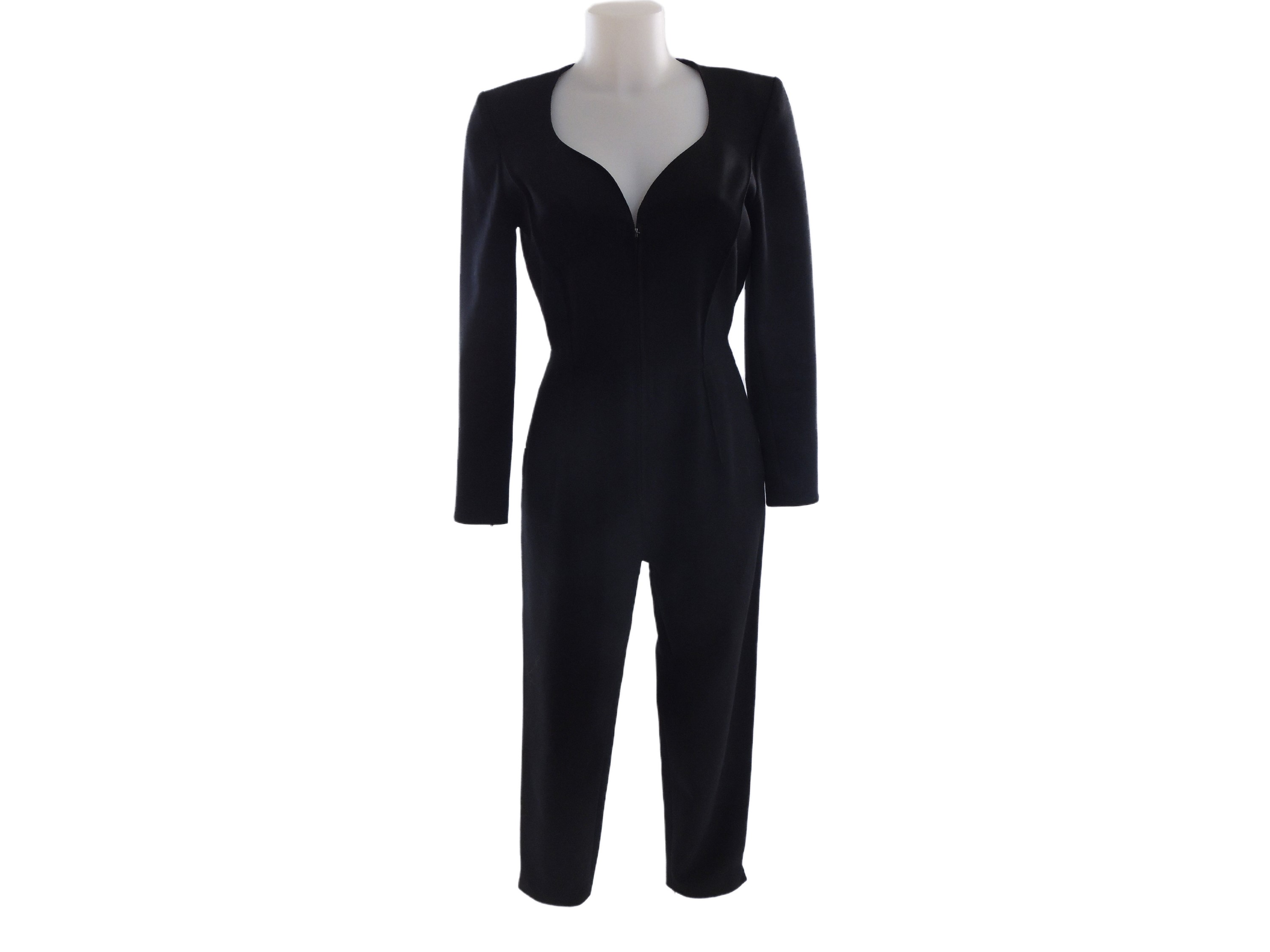 Anni Novanta in lana nera stretch scollo a V e chiusura centrale con zip, lievi difetti