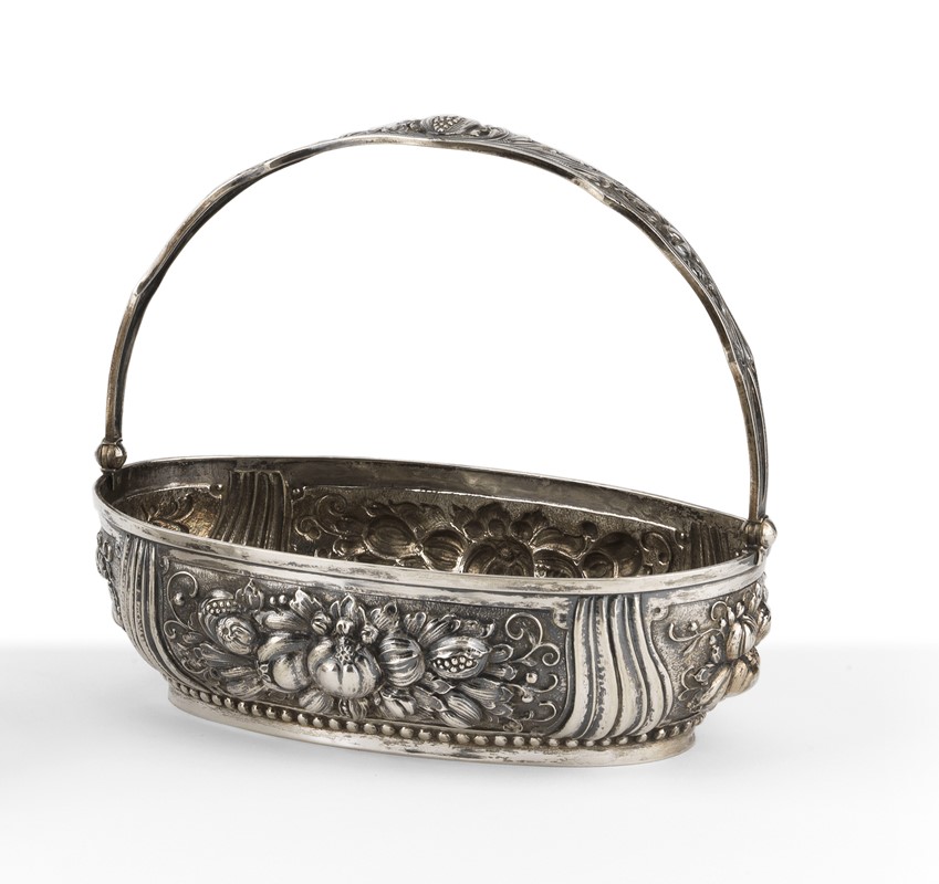 Cestino con manico in argento