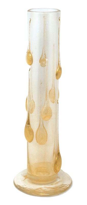 Cleto Munari alto vaso in vetro ambra con inclusioni a caldo in oro