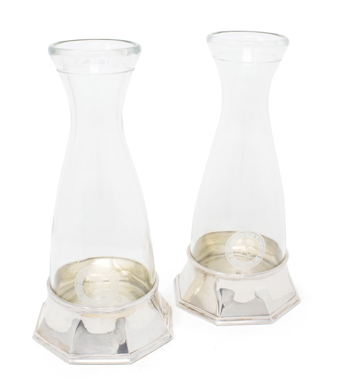 Faraone coppia di decanter in cristallo e argento sterling