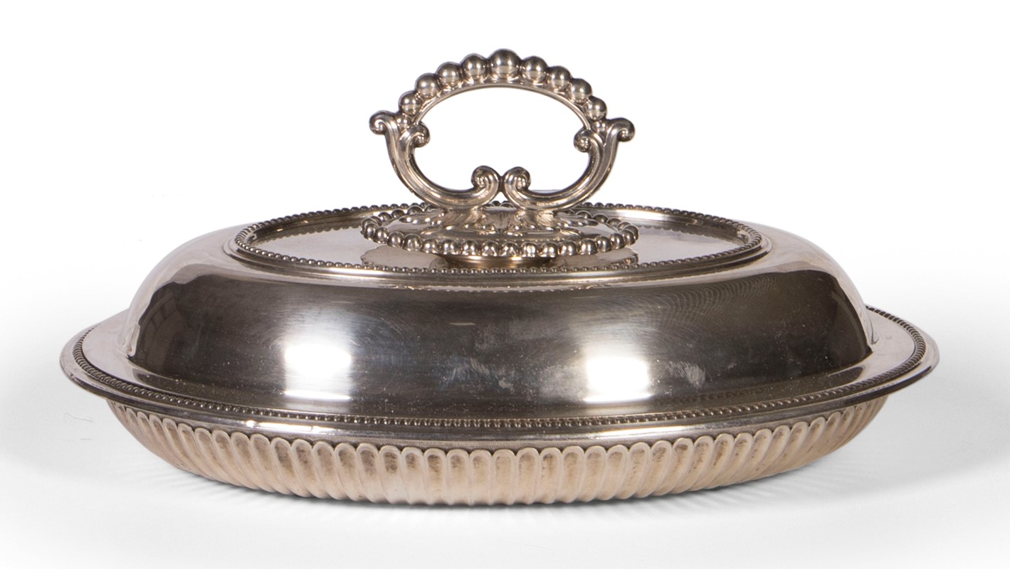 Grande vassoio e legumiera in metallo argentato