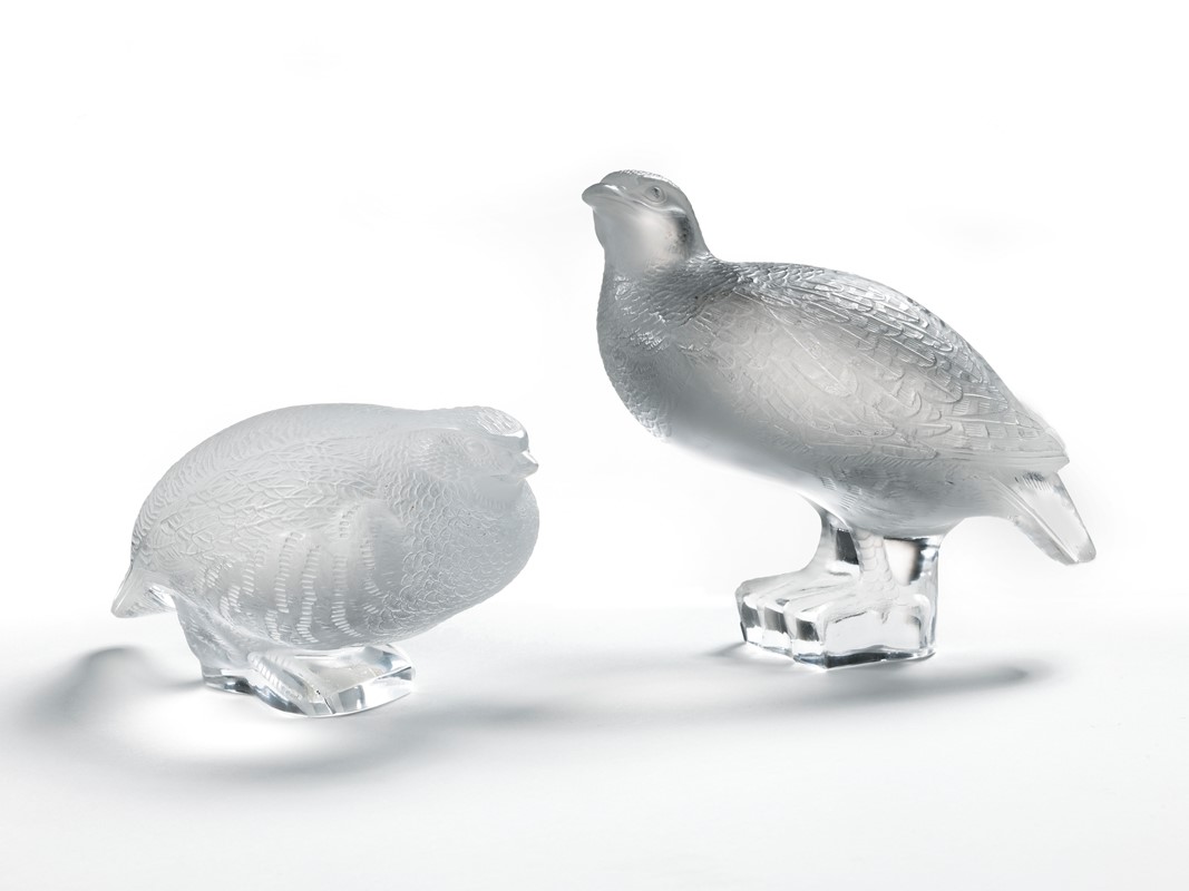 Lalique pernici «Perdrix couchée» e «Perdrix inquiète» in vetro pressato incolore [..]