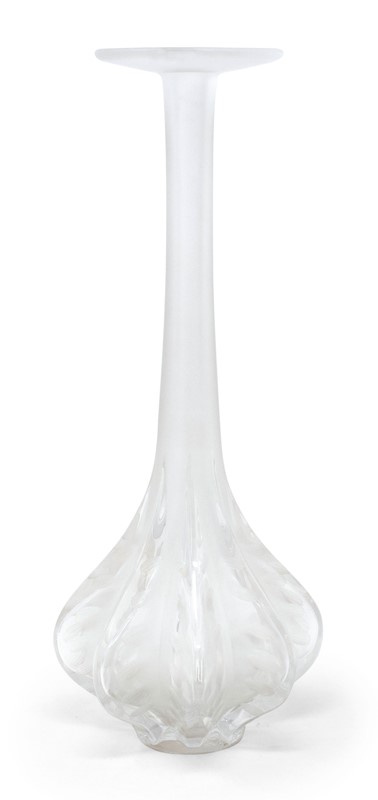 Lalique vaso monofiore in vetro pressato incolore e satinato Marie Claude