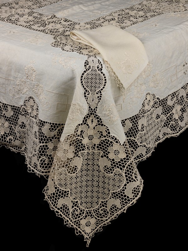 Tovaglia con dodici tovaglioli in lino beige