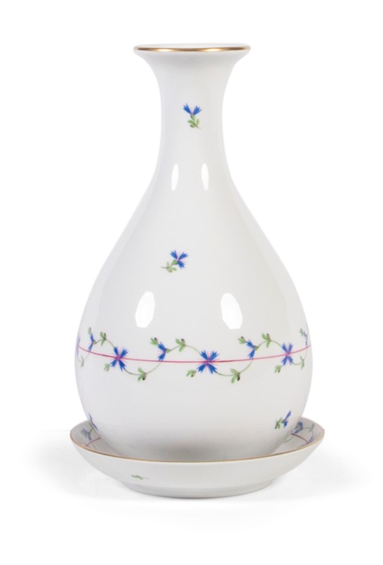 Vaso e piattino in porcellana policroma Herend Blue Garland