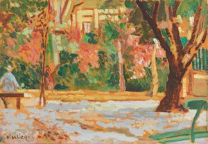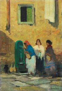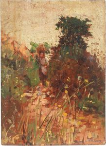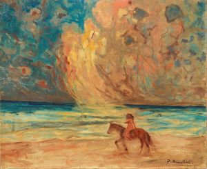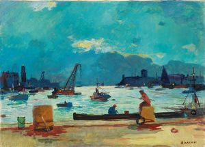 Olio su tela, cm. 85x65,5 1950-60 ca. Firma in basso a sinistra: Quinto M.; firma al verso sul telaio: Quinto [..]
