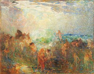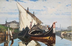 Olio su tela, cm. 99,5x40 ca. ognuno 1901 Entrambi con firma, data e luogo in basso a destra: M. Meucci 1901 [..]