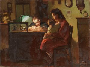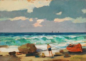 Olio su cartone, cm. 33,5x48 Firma in basso a sinistra: Merello Rubaldo.