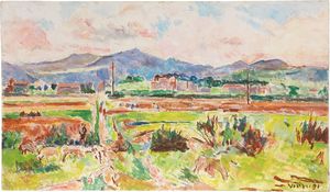 Olio su cartone telato, cm. 23,4x40,5 (1929) Firma in basso a destra: Ulvi Liegi, firma e data in basso a sinistra: [..]