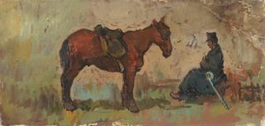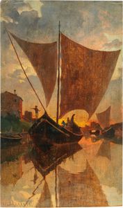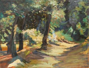 Olio su cartone, cm. 62x49 (1922) Scritta e firma al verso: Caro Monti, avanti d'incorniciarla / la prego di [..]