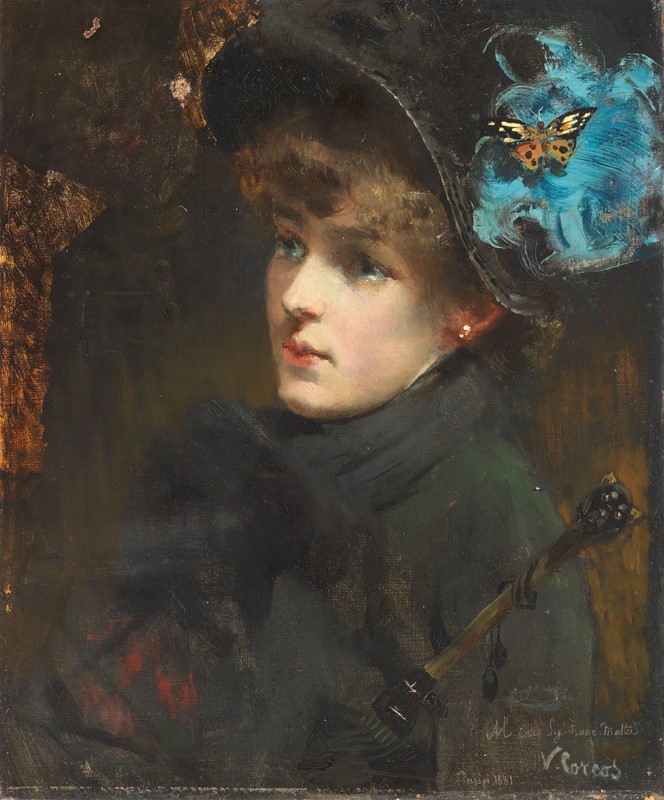 1881 Dedica, firma, luogo e data in basso a destra: Al caro Sig. Franc. Mattei / V. Corcos / Parigi 1881.