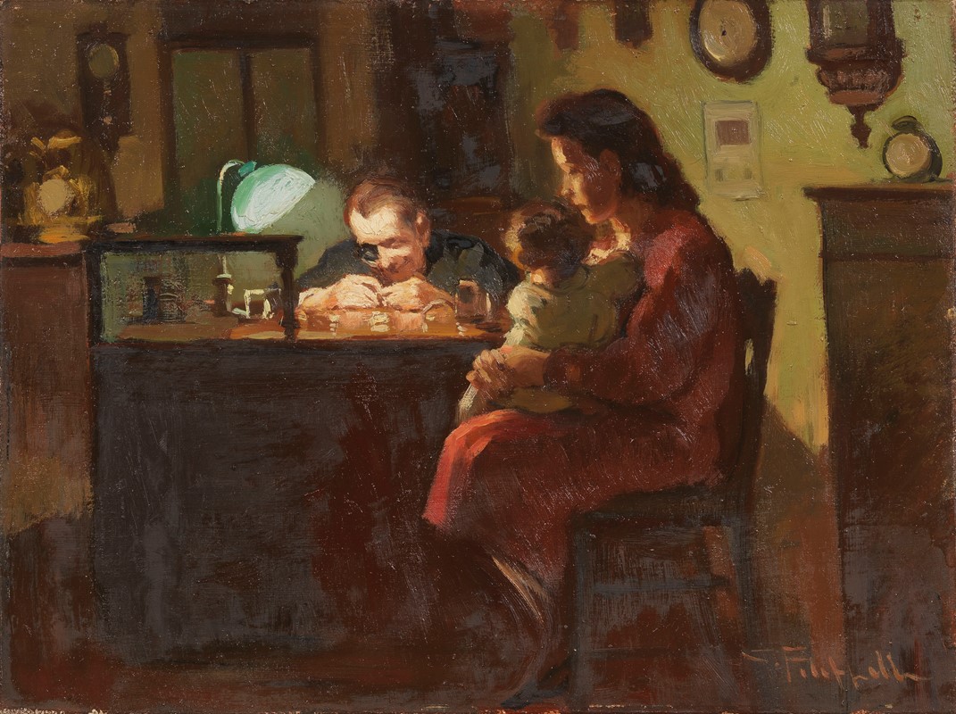 Firma in basso a destra: C. Filippelli; titolo, data e luogo al verso: L'orologiaio / Cafiero Filippelli / Livorno.