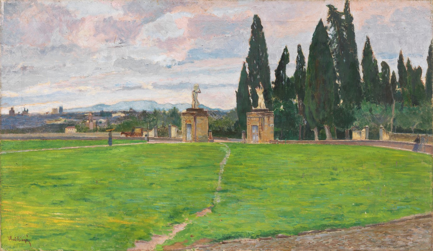 1902 Firma in basso a sinistra: Ulviliegi; firma, titolo, luogo e data al verso sul telaio: Ulvi Liegi Il Piazzale di Poggio Imperiale (Firenze) 1902.