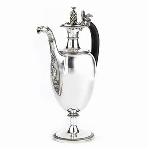 GRANDE CAFFETTIERA, MILANO, 1830 CIRCA, ARGENTIERE EMANUELE CABER, RIPUNZONATA ALLA BASE A FIRENZE NEL XIX SECOLO [..]