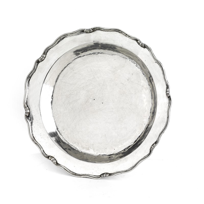 in argento con tesa profilata a volute, diam. cm 37, 1130