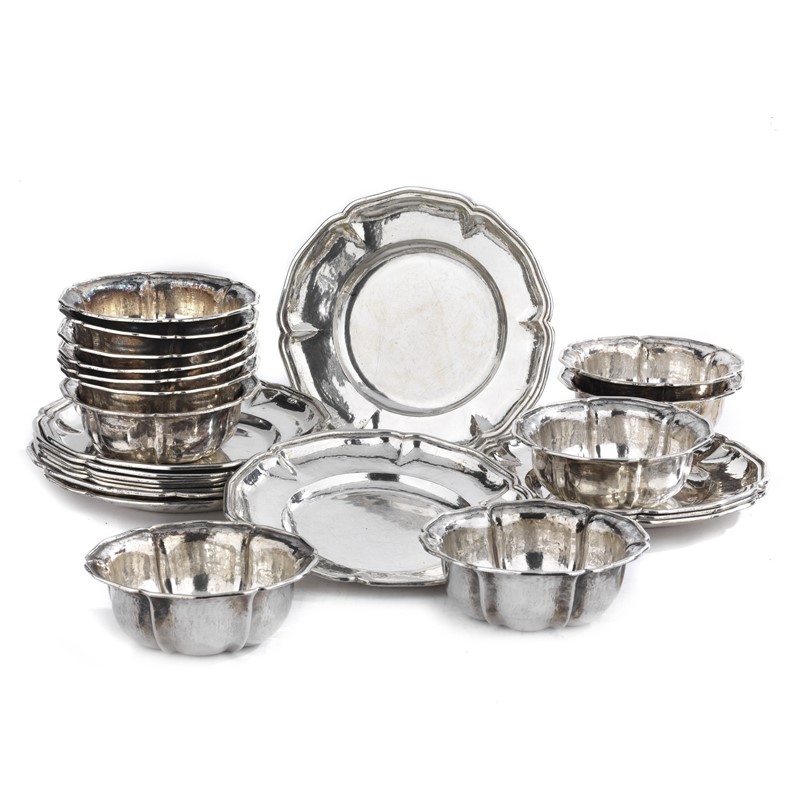 TWELVE SILVER FINGER WASHING CUPS WITH TWELVE SILVER SAUCERS, 20TH CENTURY