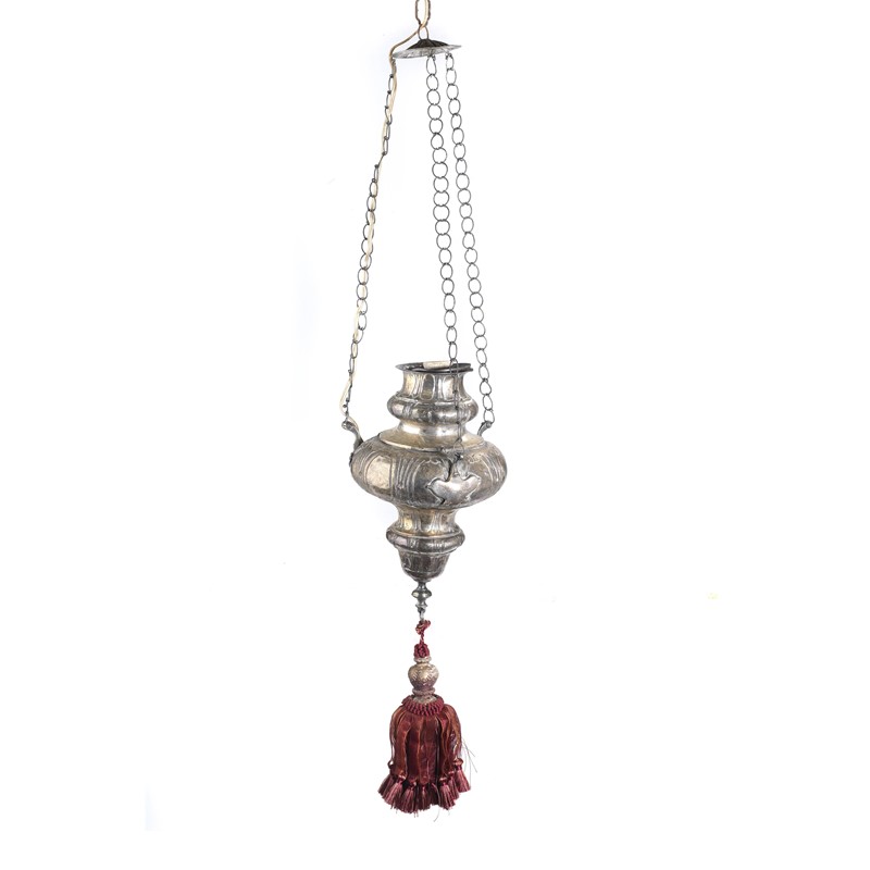 A SILVERED METAL CHURCH LAMP, 19TH CENTURY