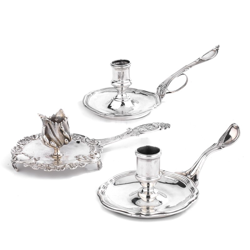 THREE SILVER CANDLE HOLDERS, FRANCIA, END OF 18TH CENTURY AND 19TH CENTURY