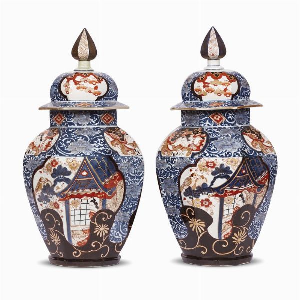 COPPIA DI POTICHES CON COPERCHIO, GIAPPONE, SECOLO XIX