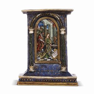 PACE, IN STILE VENEZIANO DEL ‘500, SECOLO XIX in rame smaltato, in forma di edicola raffigurante la Sacra [..]