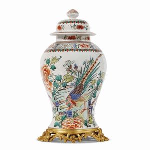 POTICHE, FRANCIA, SECOLO XIX nei toni del bianco e del rosa e del verde, coperchio con presa a pomello che scende [..]
