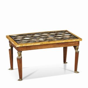 TAVOLINO DA CENTRO, TOSCANA, SECOLO XIX il piano in commesso di marmi vari policromi a decori geometrici incorniciati [..]