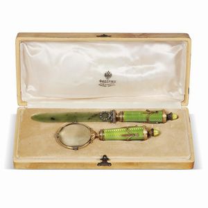 TAGLIACARTE E LENTE DI INGRANDIMENTO, RUSSIA, INIZIO SECOLO XX in oro e metallo dorato, impugnature con fondo [..]