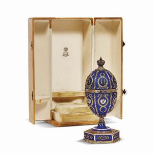 UOVO “IMPERIALE”, RUSSIA, INIZIO SECOLO XX in smalto blu traslucido con montatura in oro e metallo [..]