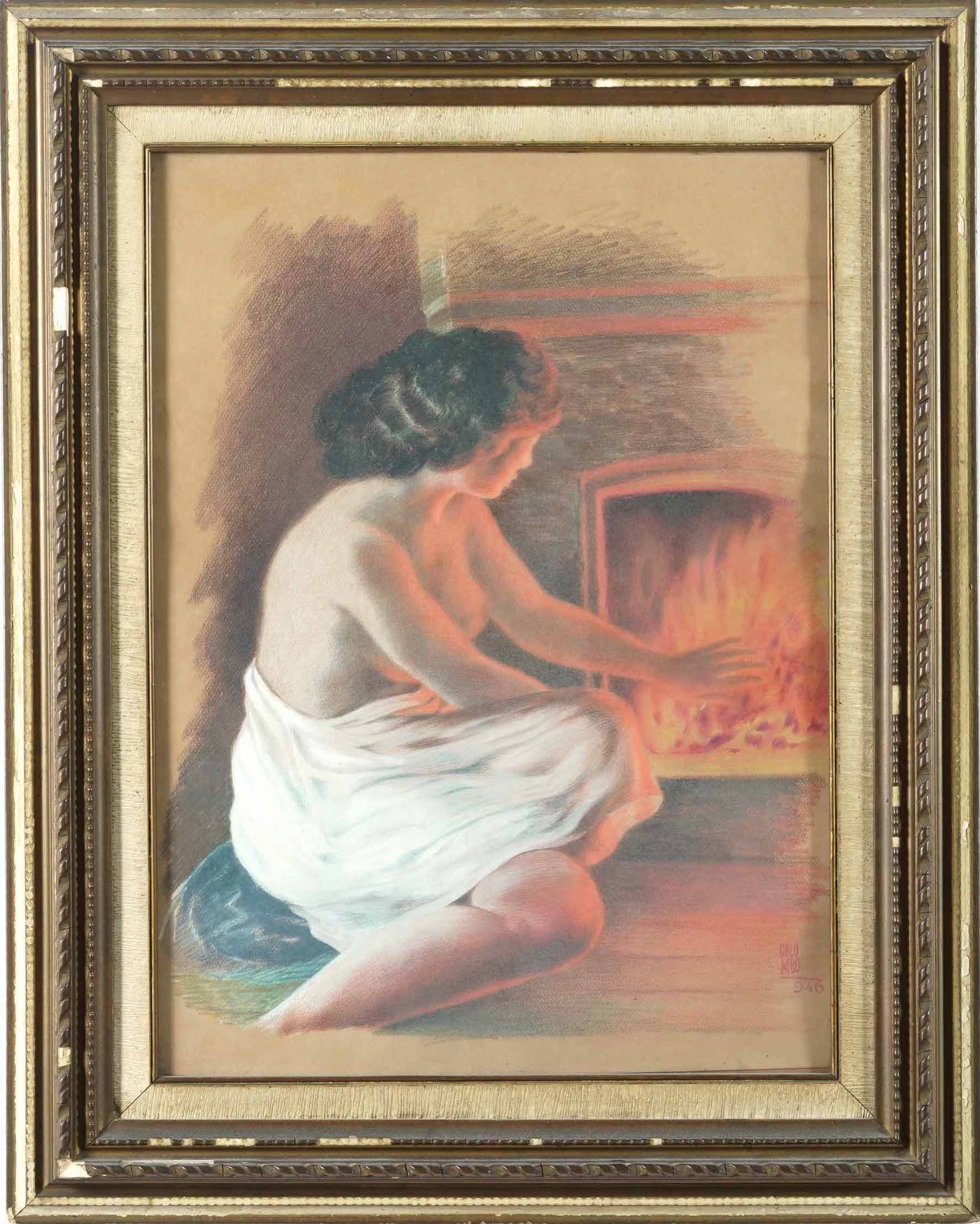 Augusto Colombo (1902-1969) Nudo femminile al focolare