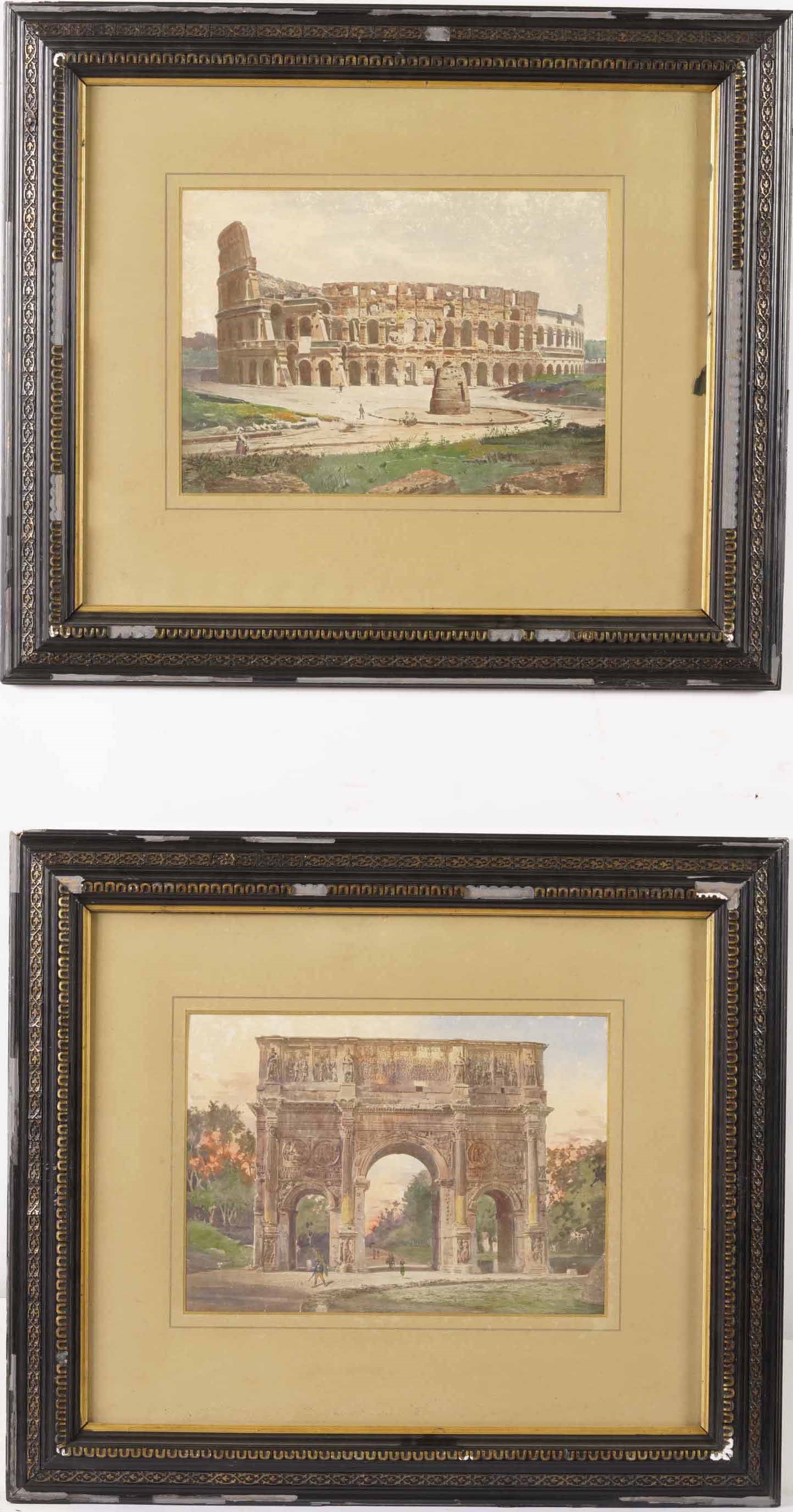 Coppia di cromolitografie su carta. Fine Secolo XIX Colosseo con Meta Sudante e [..]