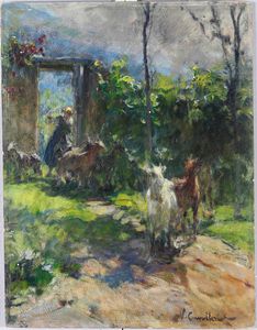 olio su tavola, Largh. 31,5 - Alt. 44 Cm datato 13-11-1908