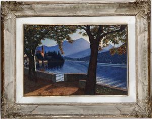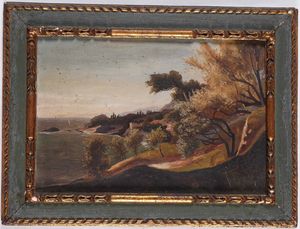 Pittore del XIX secolo Paesaggio con lago e pastore