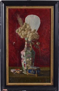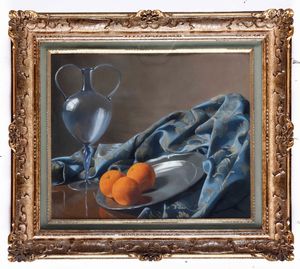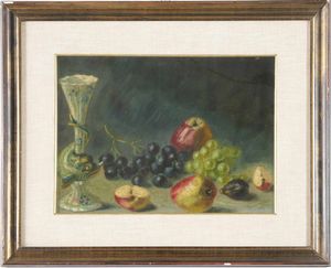 Anonimo del XX secolo Natura morta con vaso e frutta
