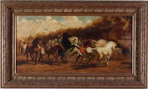 Pittore anonimo del XIX secolo La fiera dei cavalli