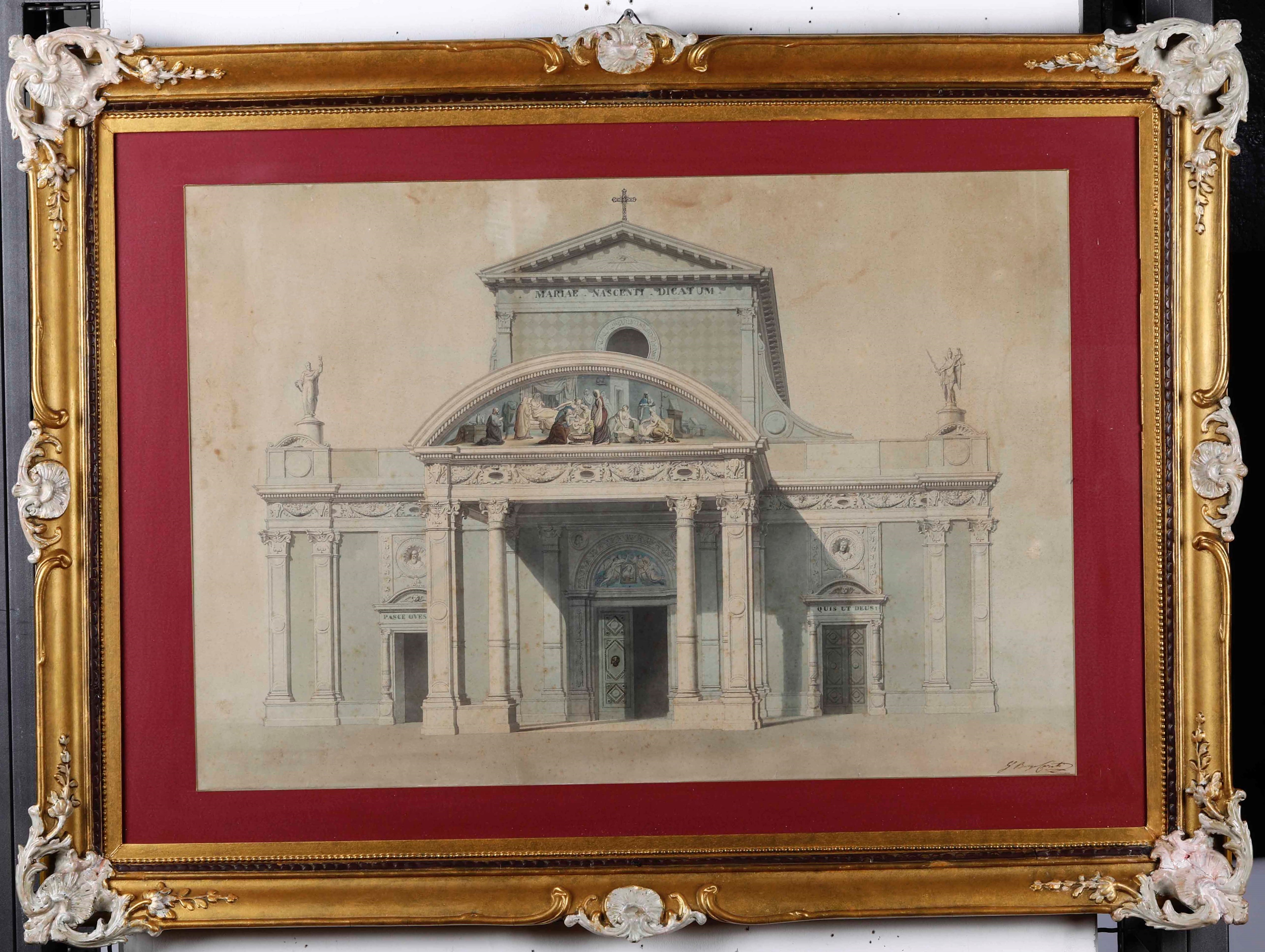 tecnica mista tu carta tra cui inchiostro bruno e acquerello, Largh. 116 - Alt. 86 Cm
