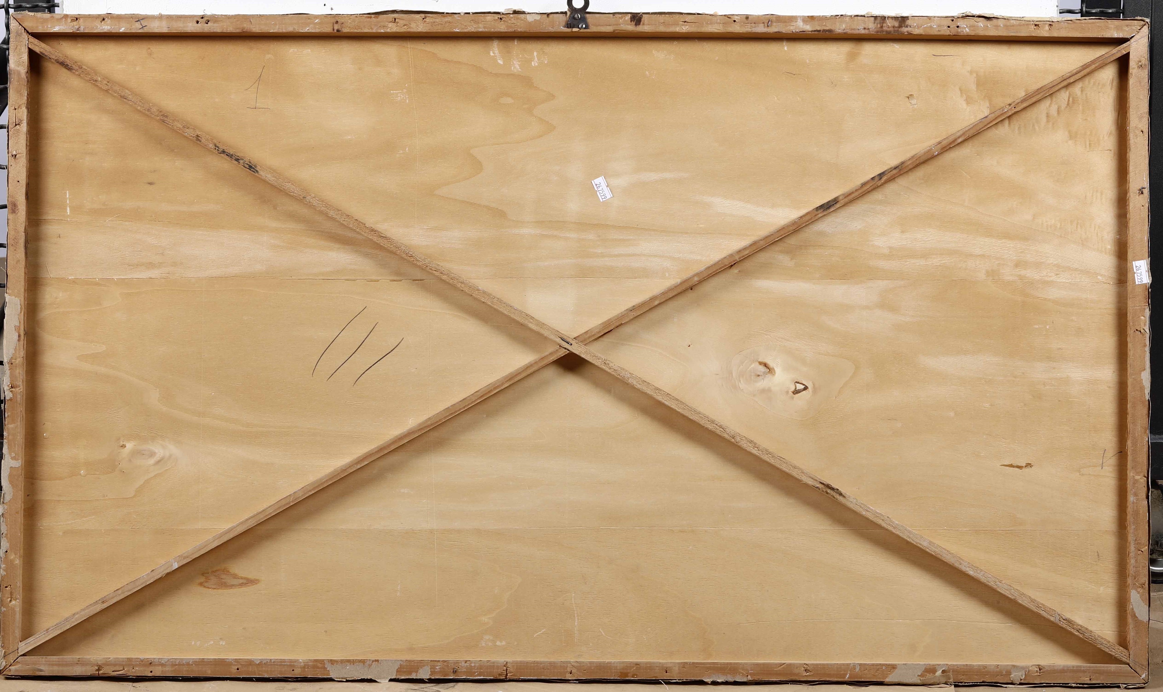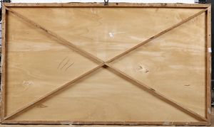 coppia di dipinti, olio su tavoletta, Largh. 105 - Alt. 57 Cm