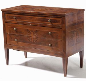 Cassettone direttorio lastronato ed intarsiato. XVIII-XIX secolo