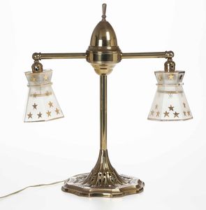 Lampada da tavolo in ottone con paralumi in vetro. XX secolo