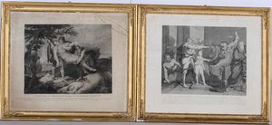 Coppia di stampe Calpurnio tribuno salva l'esercito romano e Amilcare che fa giurare [..]
