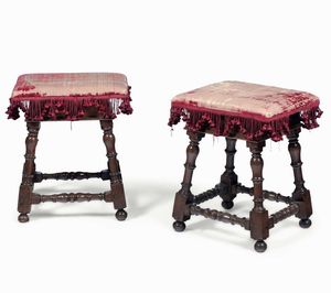 Coppia di panchetti a rocchetto in noce. Toscana, XVII-XVIII secolo