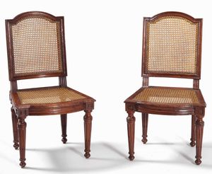 Coppia di sedie Luigi XVI in noce intagliato. XVIII-XIX secolo