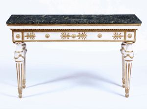 Consolle in legno intagliato, dipinto e dorato. XIX-XX secolo