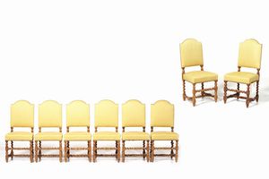 Gruppo di otto sedie con gambe a rocchetto