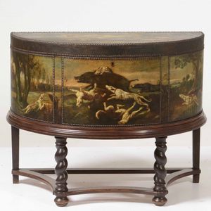 Cappelliera dipinta con scena di caccia al cinghiale