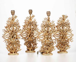 Lotto di tre lampade da tavolo e un portacandele con fusto in foggia di corallo [..]
