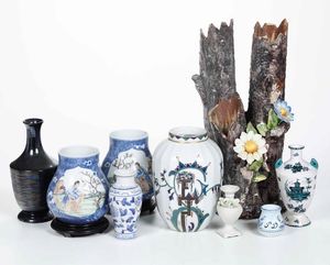 Lotto di nove vasi in ceramica