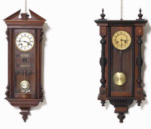 Lotto di due orologi da parete in legno, inizio XX secolo