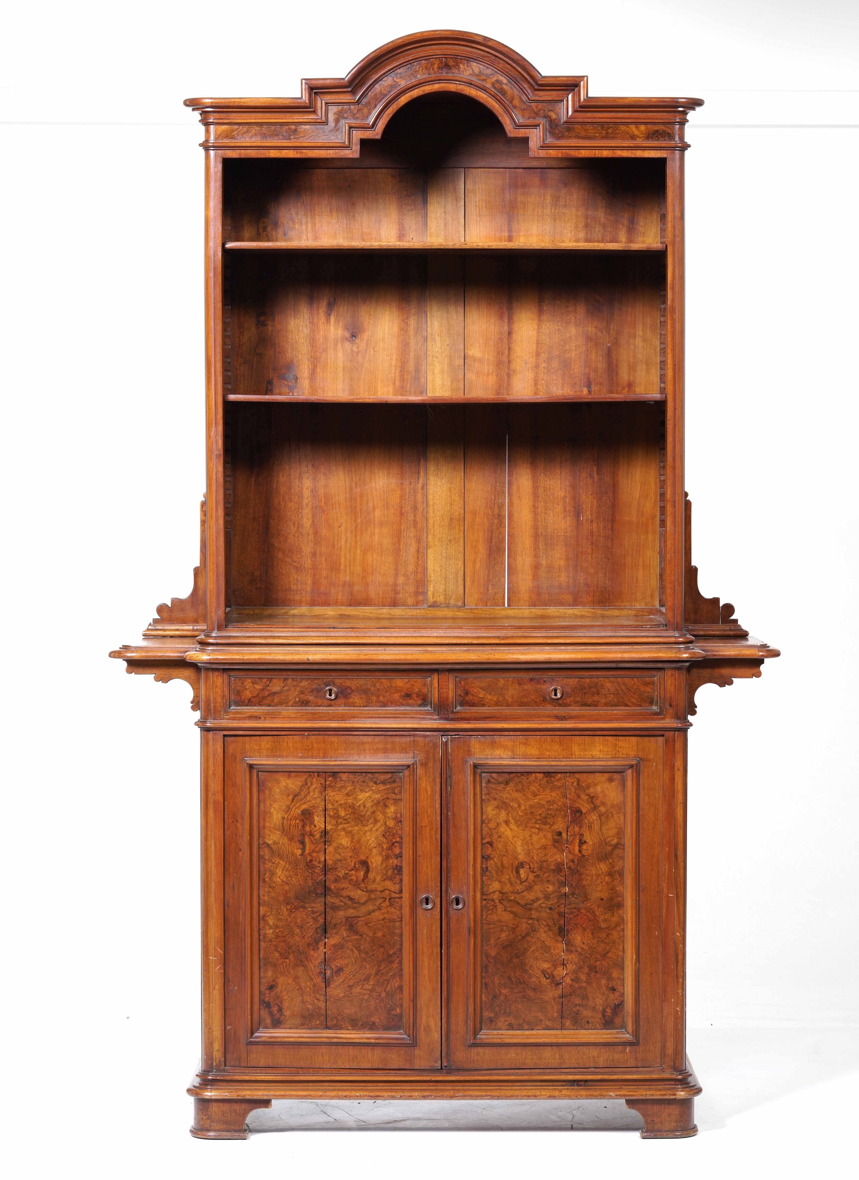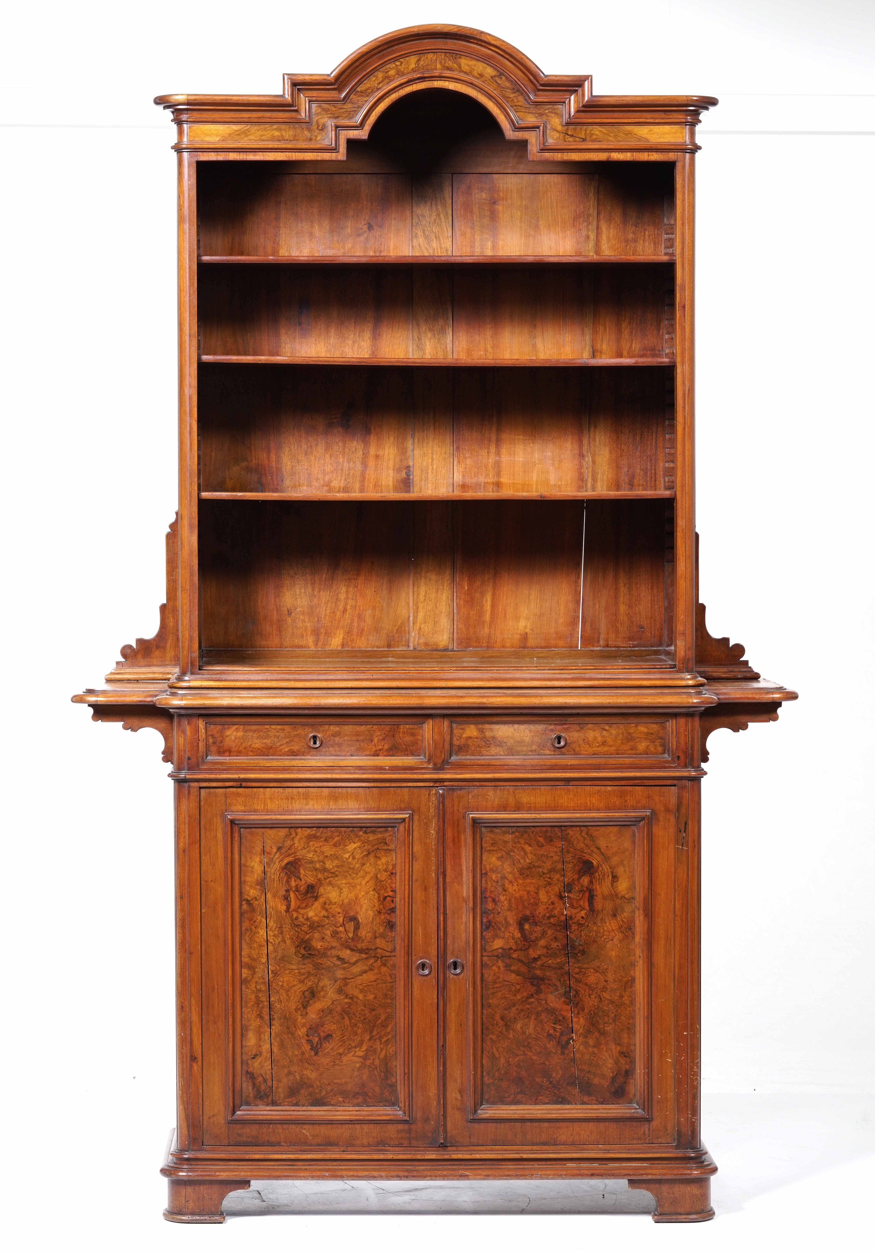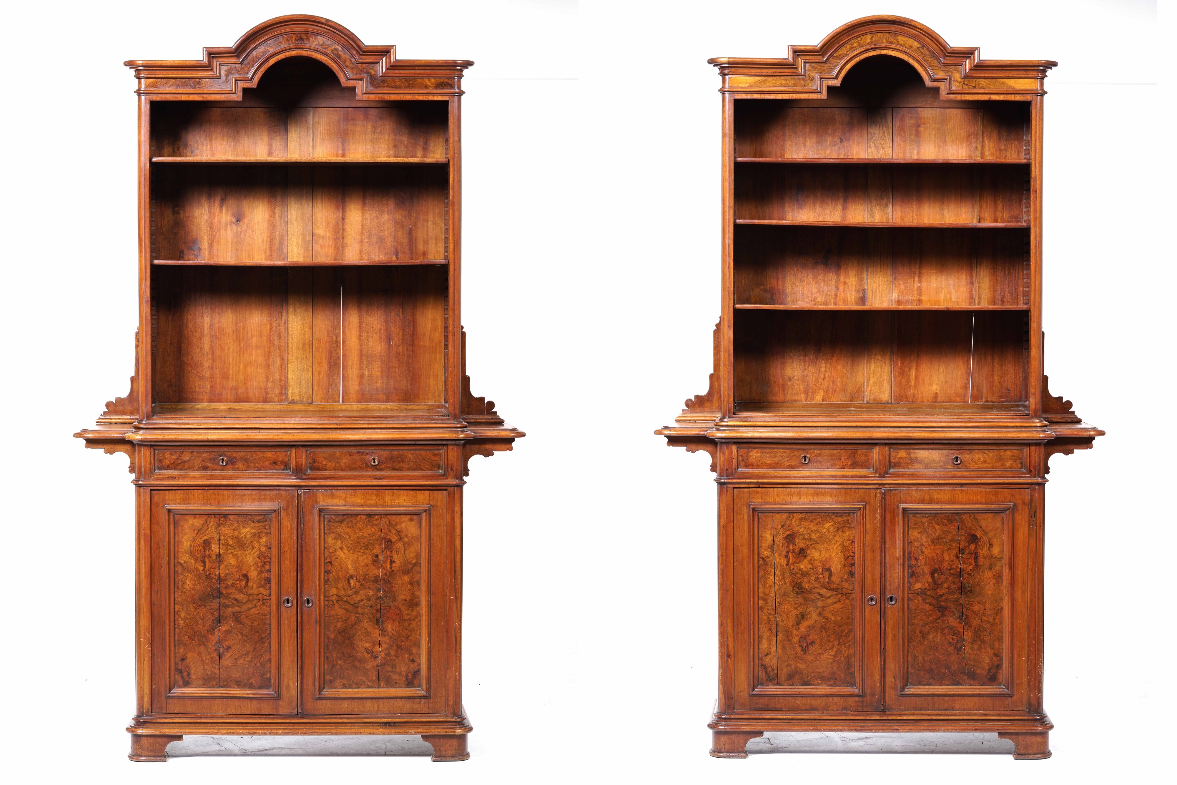 Coppia di librerie lastronate in noce e radica. XIX secolo