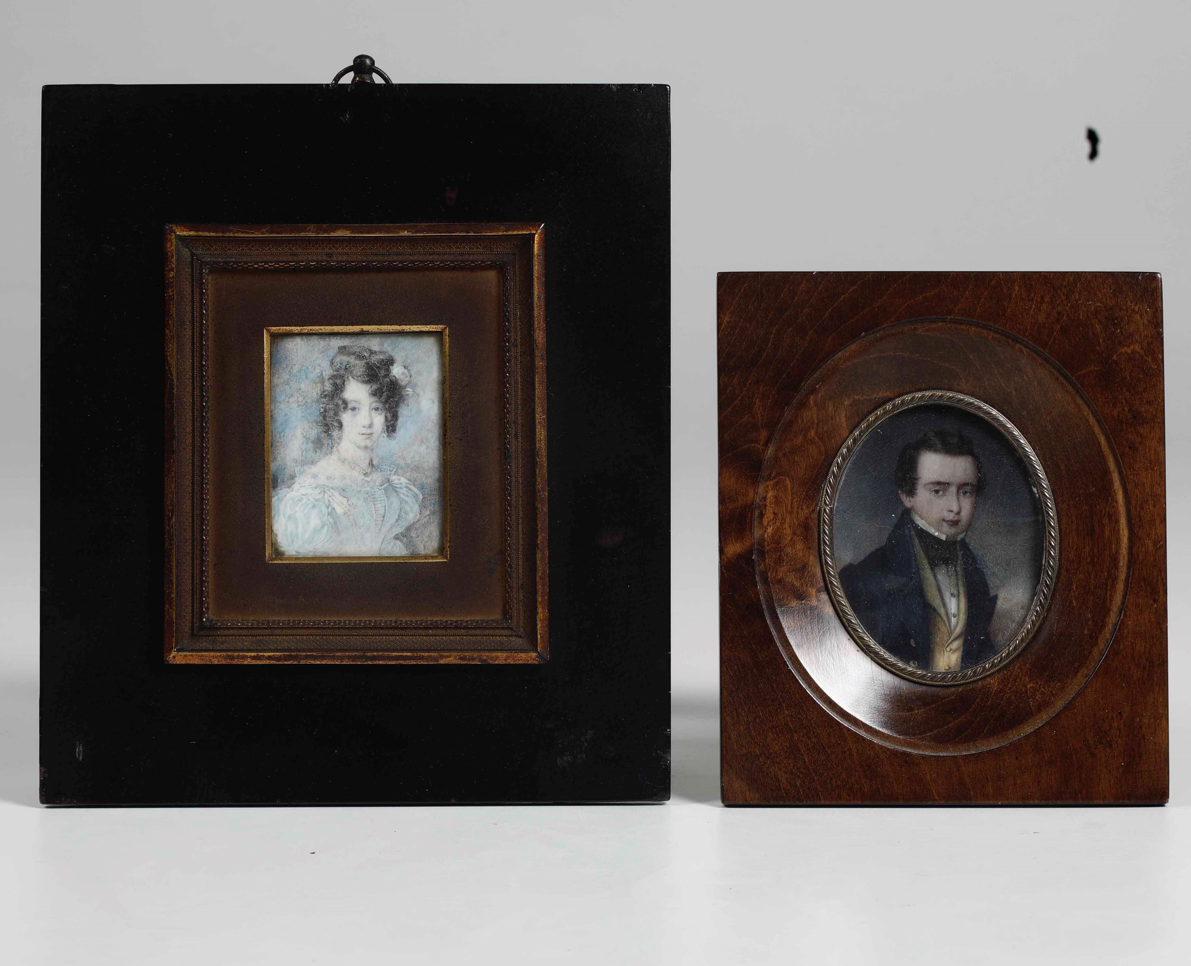 Due miniature su avorio raffiguranti giovinetta e fanciullo in marsina. Manifatture [..]
